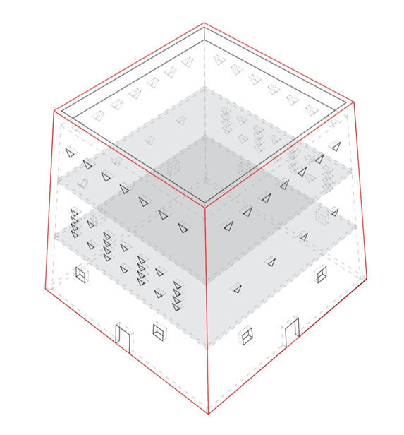 The vision is derived from the vernacular form of the region, re-interpreting the tapered form and triangulated openings pattern, whilst considering circulation, ventilation, shading and lighting factors.