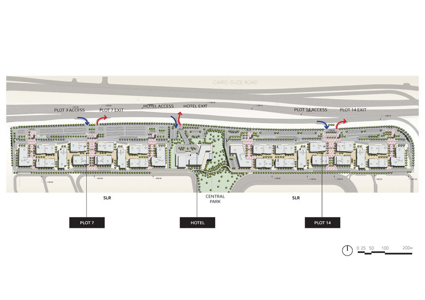 Swan Lake Residence’s commercial district is a state of the art 1.4 kilometer long masterplan, within new Cairo city. The masterplan is split into 2 plots, 7 & 14, with a lush central park in between.